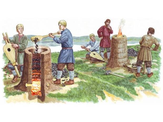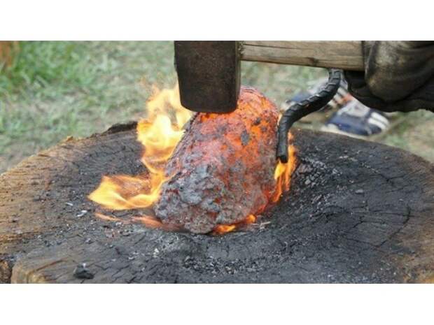 Этот кусок начинали оббивать молотами на наковальне, чтобы выбить, «выдавить» из него всю «грязь», говоря современным языком – «шлак». А уже из полученного железного слитка ковали те самые мечи, ножи и топоры.