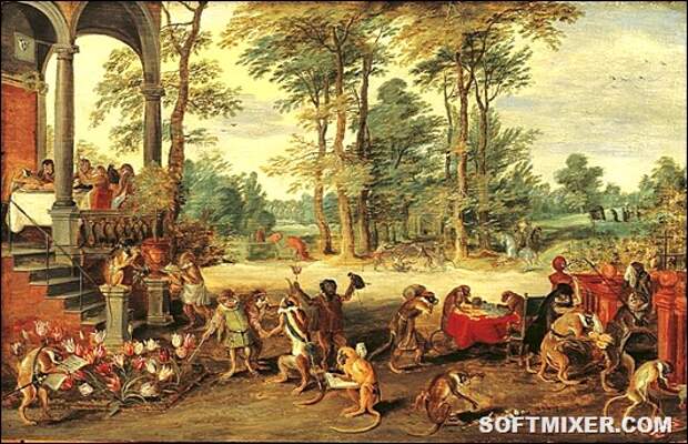 «Аллегория тюльпаномании». Картина Брейгеля-младшего на лубочный сюжет, около 1640 года.
