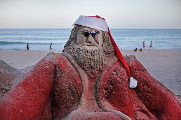 1. В Рио на знаменитом пляже Копакабана Санту традиционно лепят из подручного материала. Фотография с моделью стоит 1-2 реала.