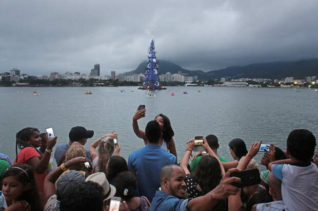 14. Городские парки украшают искусственными елками. В Рио-де-Жанейро, к примеру, главную городскую ель предпочитают ставить на приличном расстоянии от любопытной публики.