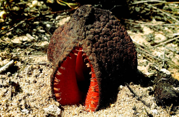 Они одновременно привлекают и отталкивают. Цветки ярко-оранжевого цвета похожи на змеиные головы с открытой пастью и пахнут тухлым мясом. Но именно этот «аромат» привлекает насекомых-опылителей — мух и жуков-навозников, которые переносят семена гидноры на другие растения. После опыления миссия гидноры считается выполненной, и она лакомится насекомыми до той поры, пока цветок не отомрет. Затем жуки используют его лепестки для откладывания личинок, и растение-монстр снова переходит к паразитическому образу жизни.