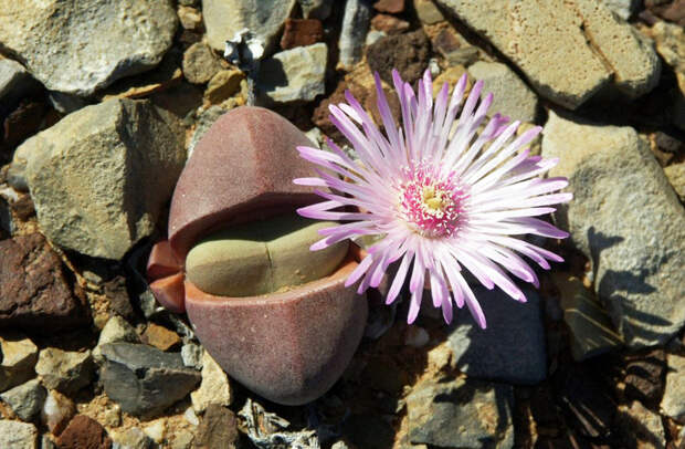 Находясь в туре по пустыне, не удивляйтесь, обнаружив камень, который не двигается с места, когда его пнешь. Литопсы очень легко перепутать с галькой, но только до тех пор, пока не появятся бутоны. Неслучайно растения так и называют: «живые камни».