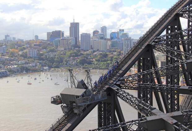 - Вскарабкаться на арки Harbour Bridge. В составе организованной экскурсии вы подниметесь на самый верх моста, на высоту 134 метра над уровнем моря. Это не требует альпинистских навыков, просто необходимо следовать за гидом и соблюдать правила безопасности. Стоимость билета для взрослого начинается от 120 USD (158 AUD). Забронировать билеты можно на сайте BridgeClimb.