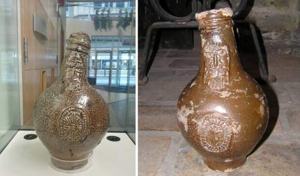 А для еще большей эффективности в смысле защиты от ведьм их зачастую украшают ликом некоего Германа Бартманна. По одной версии - «христианского мага» из Кельна, научившегося «накладывать» заговоры против ведьм на свое рукотворное чело, венчающее такую бутыль. По другой - просто некоего бородатого германца: травника, инквизитора и борца с ведьмовством.