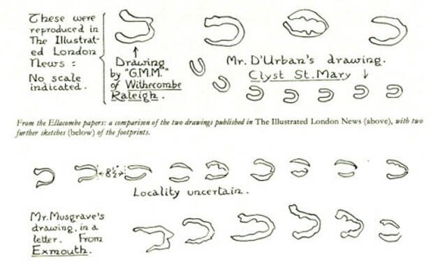 В феврале месяце 1855 года в Южном Девоне произошел очень странный и по-своему уникальный случай. Ночью был сильный снегопад, а на утро люди обнаружили на снегу следы, которые, предположительно, были оставлены каким-то копытным животным, но двуногим.